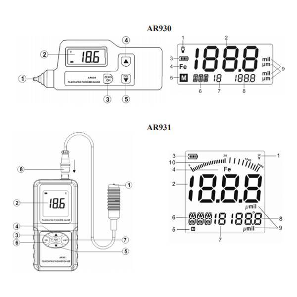 В основу принципа действия толщиномера положен принцип электромагнитной индукции. Электромагнитные волны, пронизывая листы обшивки, дают показания о толщине металла. Для подобных измерений не требуется демонтажа конструкции. При помощи AR930 можно быстро и с минимальными погрешностями измерить толщину покрытия. Прибор имеет небольшие габаритные размеры, удобный метод эксплуатации, что делает его востребованным среди специалистов этого направления.