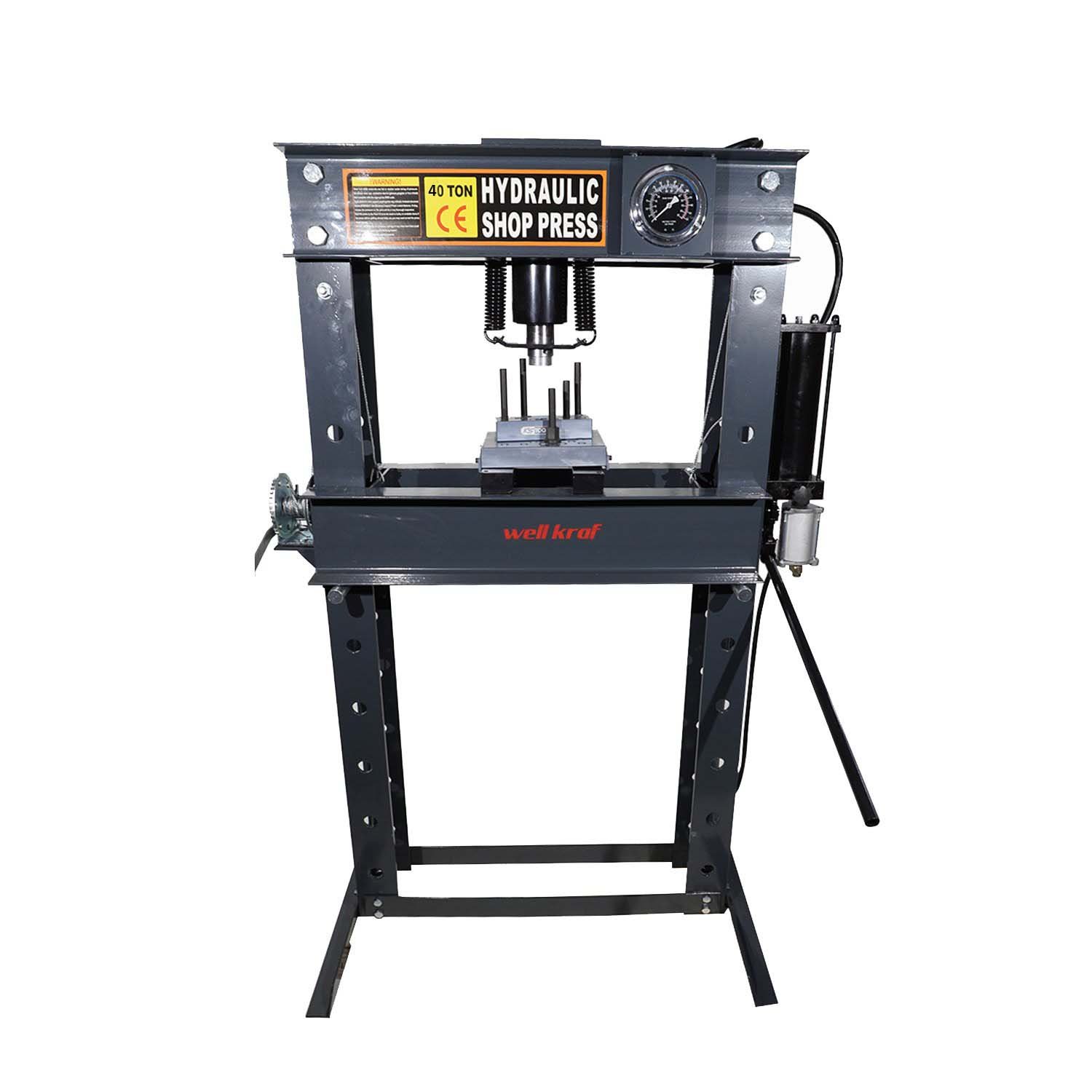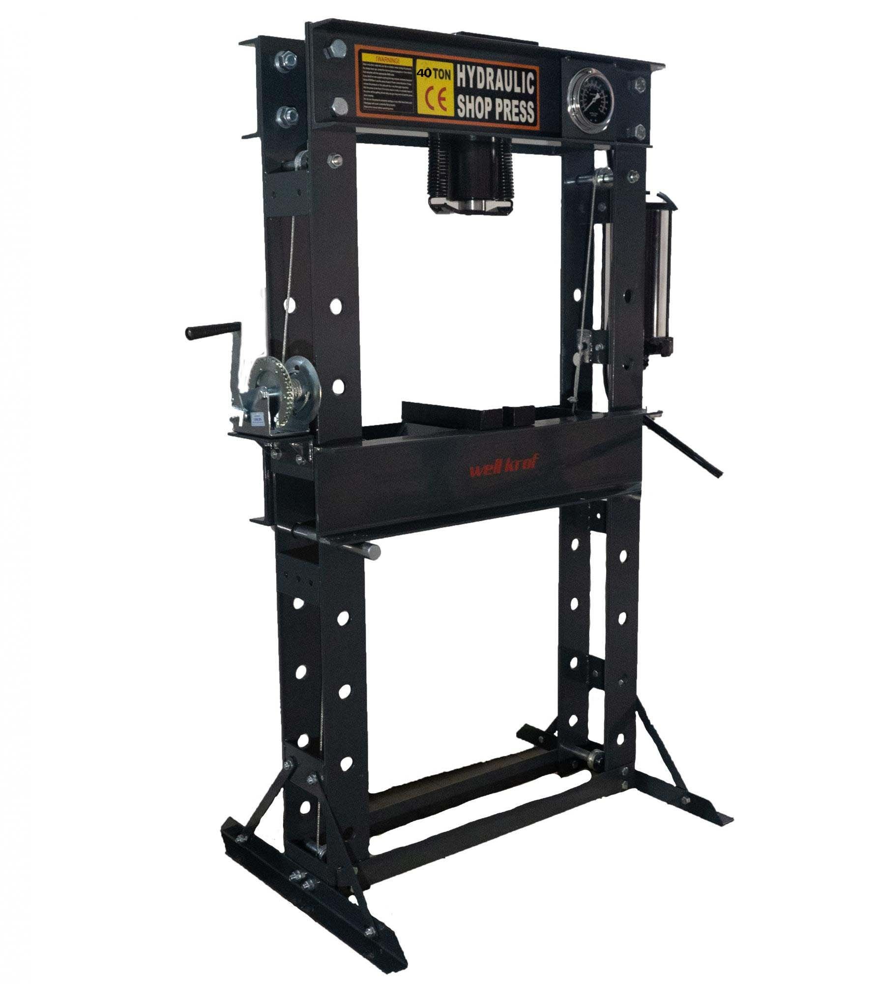 Пресс гидравлический 40т Well Kraft HW SP40Q с пневмоприводом - универсальный прибор, позволяющий выполнять множество операций, например: запрессовка и выпрессовка втулок, подшипников, разборка и сборка различных деталей. Модель успешно используется в автомастерских и на станциях технического обслуживания. Рабочий стол с легкостью регулируется по высоте, что позволяет устанавливать детали различных габаритов. За перемещение стола отвечает лебедка: нет необходимости поднимать и опускать тяжелую рабочую поверхность вручную. Наличие манометра позволяет контролировать давление воздуха во время работы.