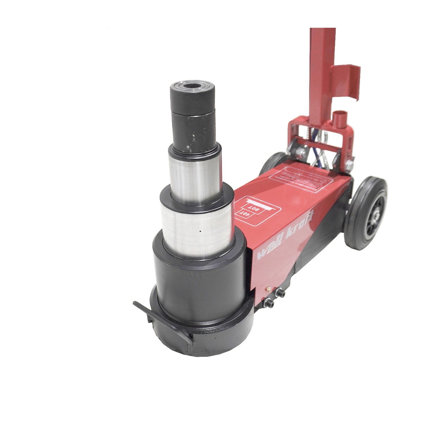 Домкрат приводится в действие сжатым воздухом, который вызывает вращение гидравлического насоса, создающего давление в секции гидроцилиндра. Увеличение давления заставляет телескопическую часть привода двигаться вверх.