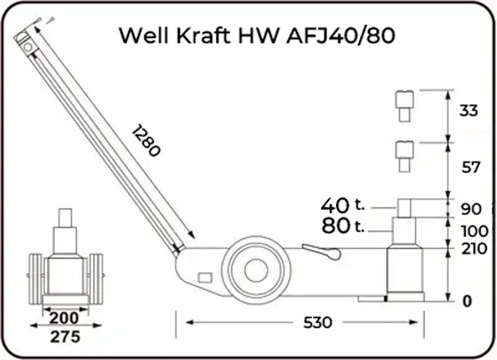 Домкрат подкатной пневмогидравлический Well Kraft AFJ40/80