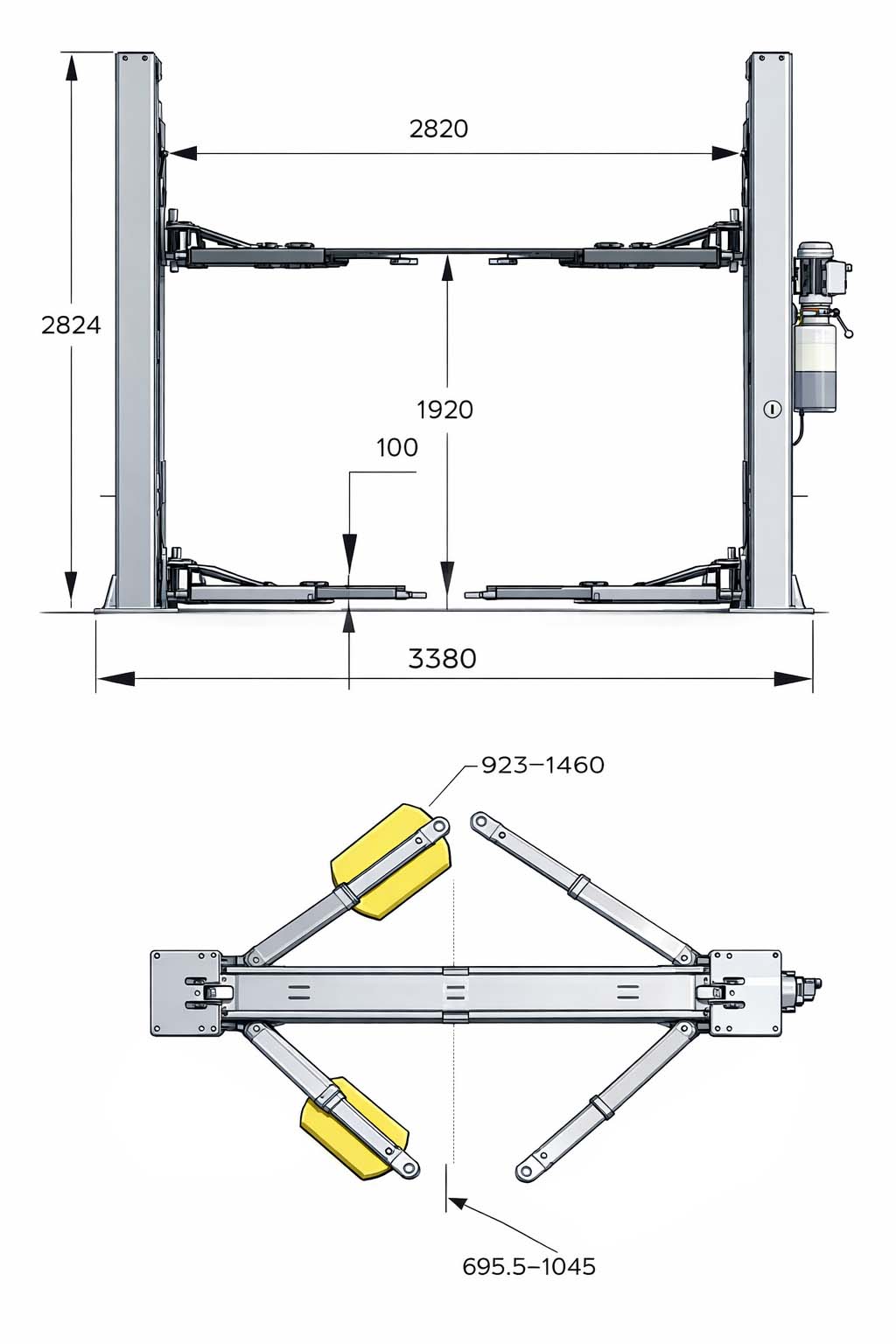- С верхним концевым выключателем, позволяющим точно настраивать поднятый уровень автомобиля.