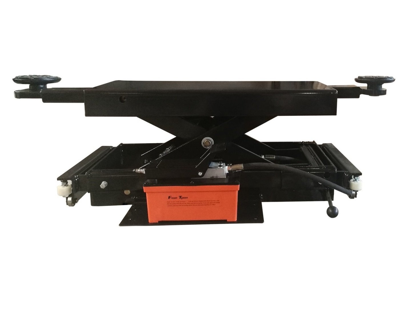 Траверса предназначена для вывешивания колес одной из оси при проведении процедуры регулировки углов установки колес автомобиля или для других ремонтных работ. Подъем осуществляется с помощью пневмогидравлического привода.