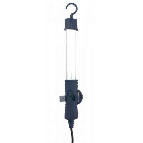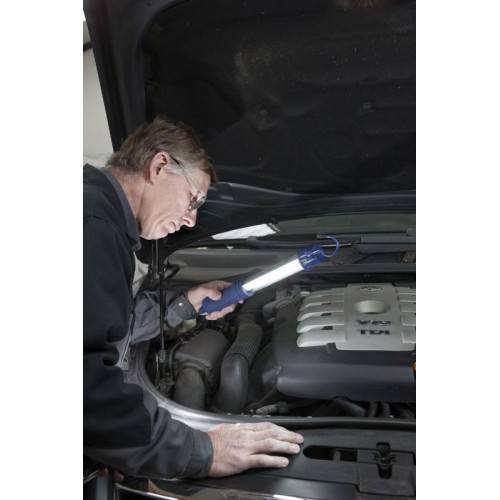 Фонарь обеспечивает чрезвычайно яркое освещение рабочей зоны СТО. Имеет эргономичную и удобную прорезиненную ручку. На верхней части фонаря размещен регулируемый крючок для крепления.