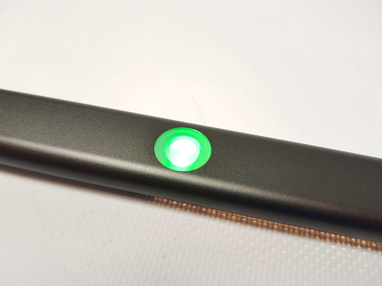 Включение и выключение фонаря осуществляется благодаря прорезиненной кнопке, которая имеет круглую форму и подсвечивается зеленым цветом. Нажать необходимо до характерного щелчка и отпустить, в дальнейшем не зажимая ее. Переключение режимов осуществляется также с помощью данной кнопки.