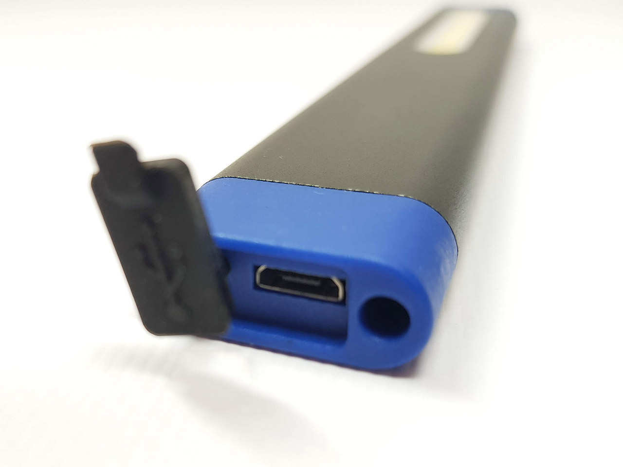 Питается данный фонарь от встроенного аккумулятора, время работы на одном заряде до 3.5 часов. Зарядка происходит через MicroUSB порт на торцевой части фонаря, который защищен резиновой заглушкой для защиты и сторонних предметов.