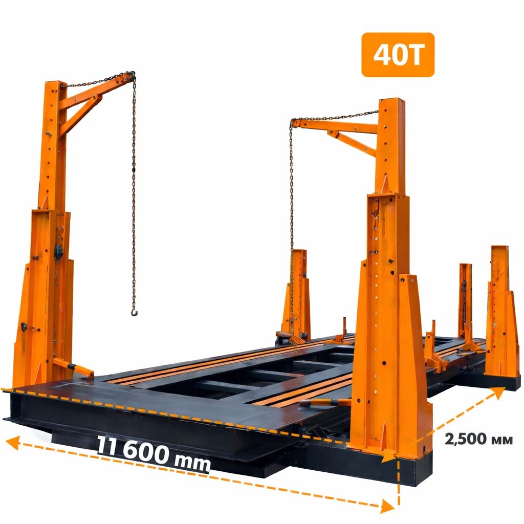 Well Kraft 40T FR-8800T — це промисловий вантажний стапель зі збільшеною платформою 11,6 × 2,5 м, шістьма витяжними баштами та тяговим зусиллям до 25 тонн на кожну башту. Він призначений для складних кузовних робіт, де потрібні максимальна потужність, висока точність, багатоточкова витяжка та робота з великогабаритною технікою.
