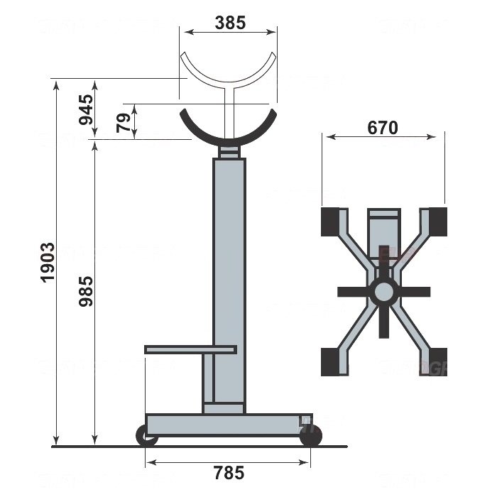 Ravaglioli KE10- трансмісійна гідравлічна стійка. Призначена для зняття та встановлення автомобільної коробки передач (КПП) та інших важких агрегатів автомобіля вагою до 2000 кг. Підйом та опускання здійснюється за допомогою ножної педалі. Маневреність досягається за рахунок чотирьох коліс. Великий розмір основи забезпечує високу стійкість вантажу.