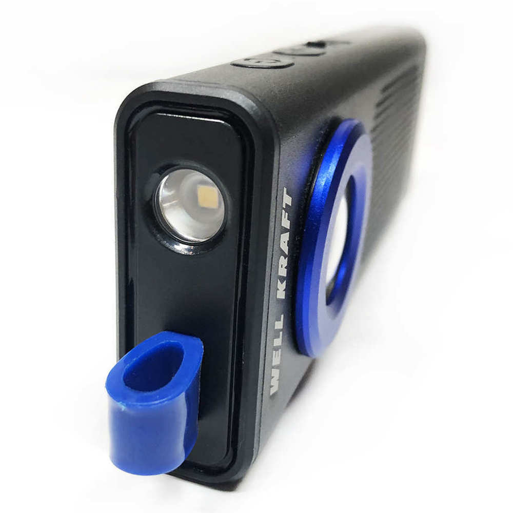 Корпус ліхтарикаWell Kraft ZF6920виготовлений із анодованого алюмінієвого сплаву темно-сірого кольору. Він не боїться падінь з висоти до 1 метра і добре захищений від попадання пилу та вологи. Також ліхтарик оснащений досить потужним магнітом для швидкого та зручного кріплення ліхтаря на будь-яку металеву поверхню. Якщо Вам потрібно, щоб ліхтарик був завжди під рукою, на верхній частині корпусу є спеціальна петля, вона дозволить закріпити ліхтарик на рюкзак або ремінь, наприклад у поході.